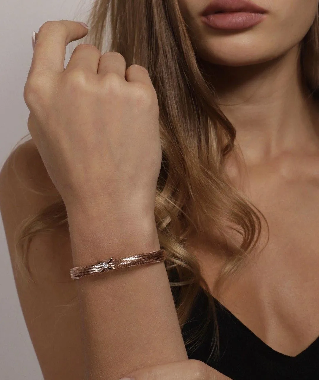 Золотой браслет, растягивающийся как резинка - современное изобретение в ювелирной отрасли. Очень легкий и эффектный. А также надежный. На каждое изделие мы даем гарантию 5 лет.