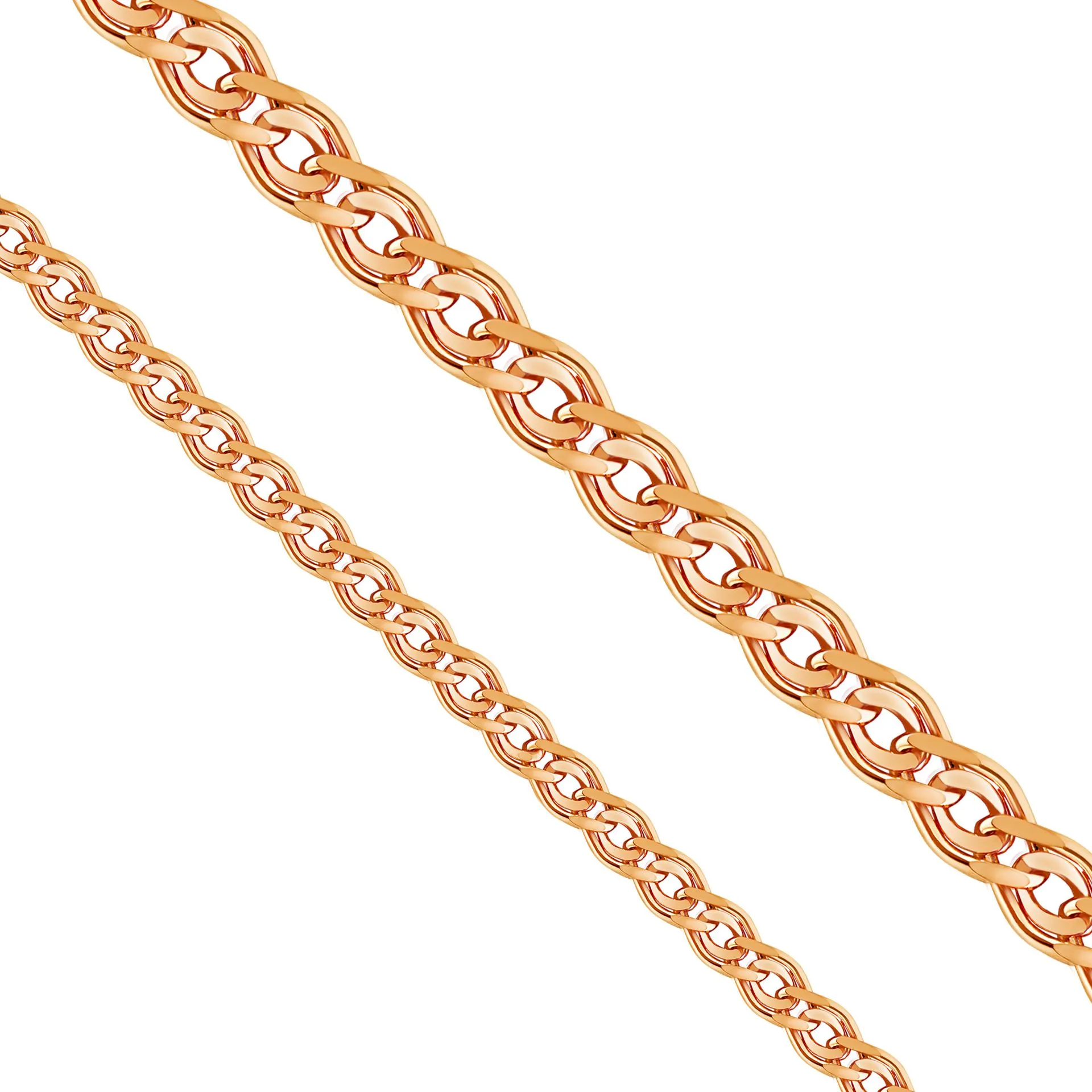 В этом плетении звенья соединены между собой так, что цепь начинает красиво перекручиваться, сверкая при вращении в лучах света. Выглядит это очень эффектно и изящно. Такая цепочка хорошо впишется и в вечерний образ, и в повседневную одежду.