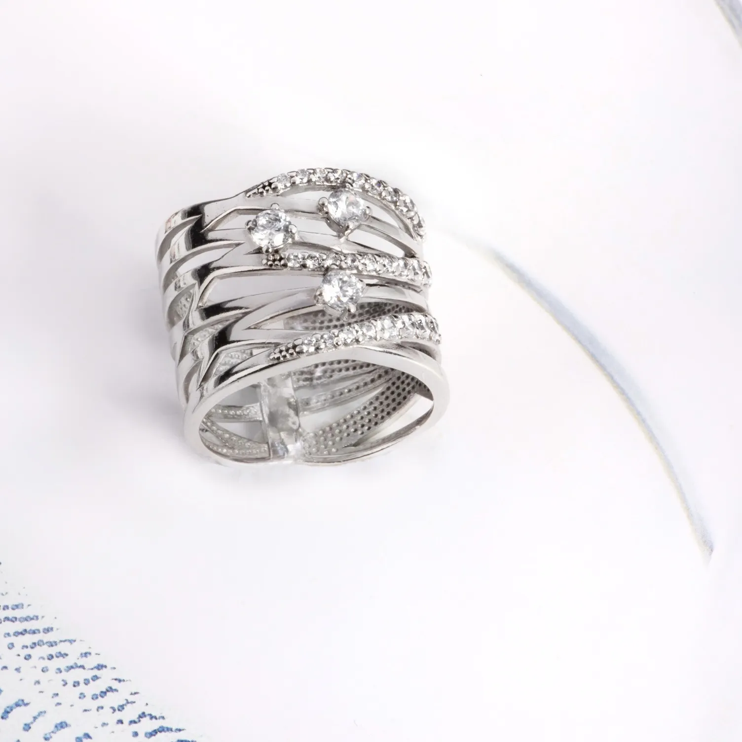 Акцентные кольца не требуют дополнительных украшений и заменяют все остальные аксессуары в образе.